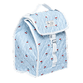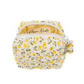 The quilted exterior is made from a beautiful lilac gingham material, complemented by matching lilac ruffles and a matching floral interior.
